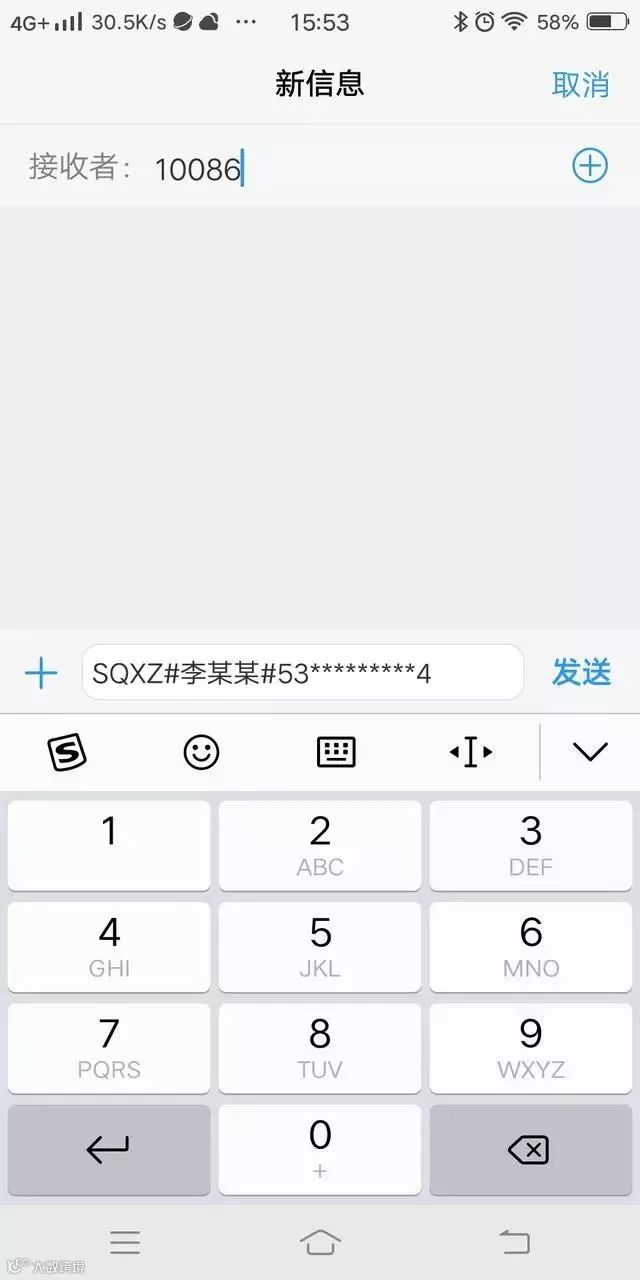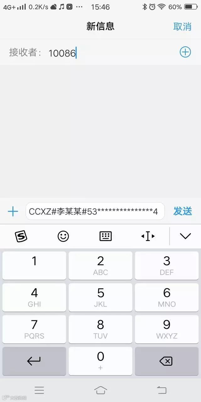 拿起你的手机通过短信在线查询携转资格(短信编辑CCXZ#用户名#证件号码,发送至归属运营商,移动10086,联通10010,电信10001)如图所示: