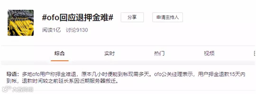 事实上,“ofo回应退押金难”已经成了微博热搜。