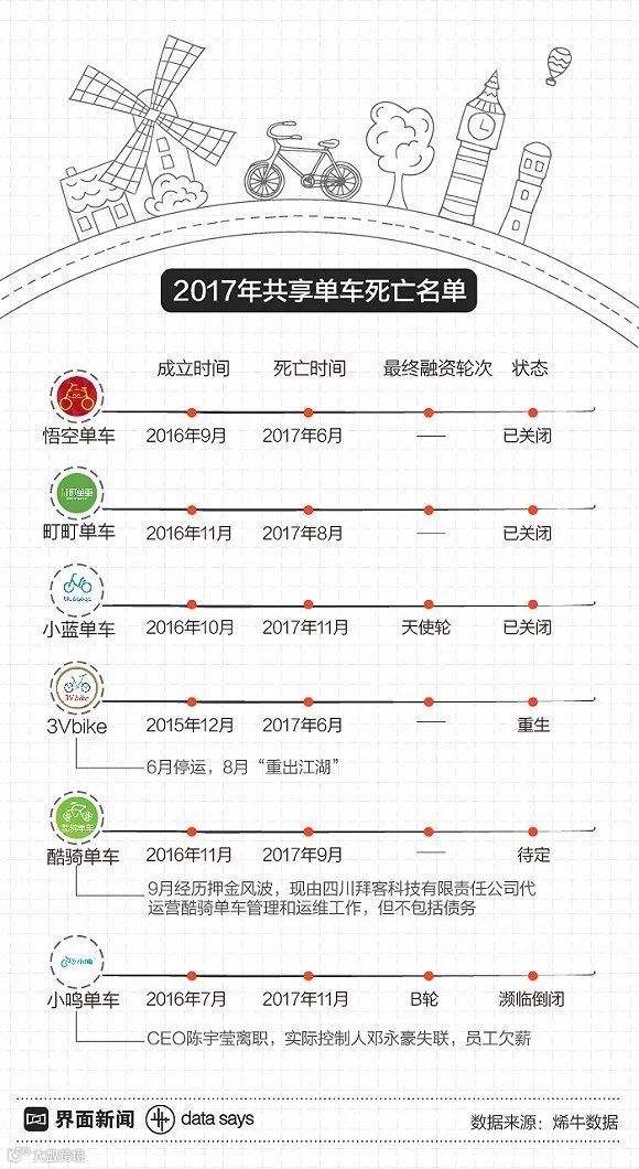 公开数据显示,已经倒闭的酷骑单车拖欠供应商2亿元、小鸣单车欠款5540万元、起死回生的小蓝单车拖欠2亿元……