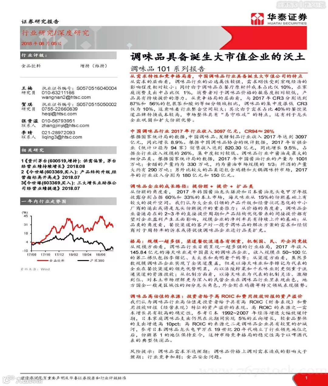 2018年食品专题行业报告-调味品