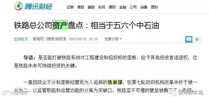 顺便交代一句:作为上述企业的唯一股东,中国铁路总公司的注册资本是10360亿元。