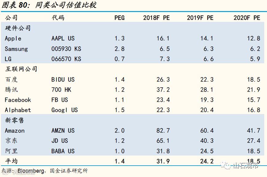 如此诉求不难理解,智能手机厂商的苹果和三星PE均为6-20之间,小米需要先证明自己能在移动互联网领域的创收和占领市场份额的能力,摆脱单纯硬件厂商的身份,才能提升PE。