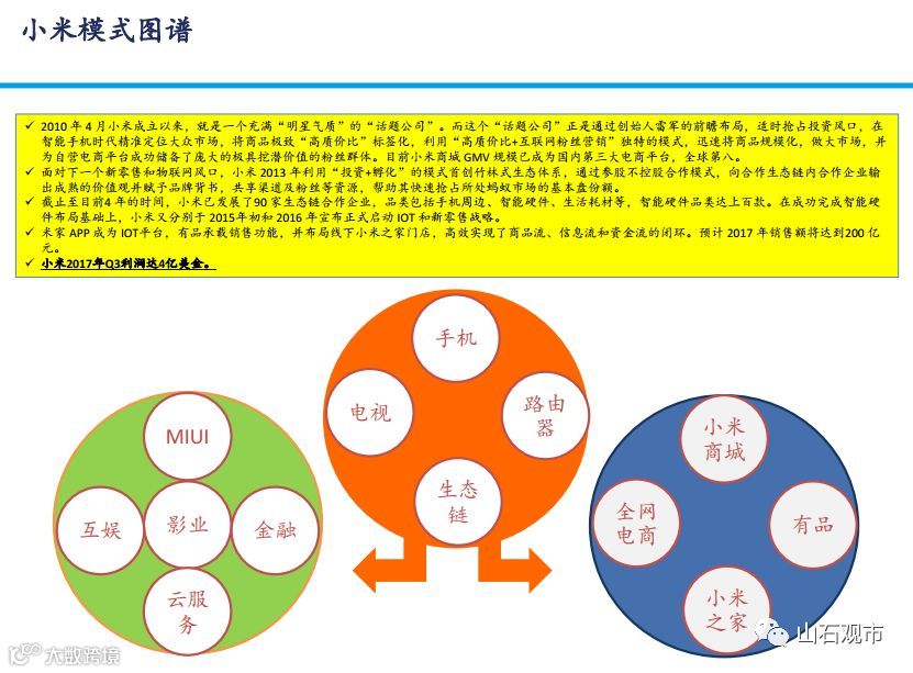 这既回答了小米自认为是个什么样的公司,也可以一窥小米生态链模式对传统消费品行业有什么冲击。