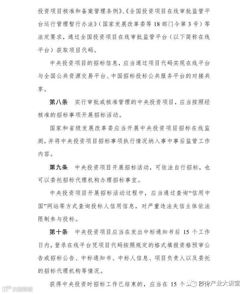 近日,国家发改委发布了关于就《中央投资项目招标管理暂行办法 (征求意见稿)》公开征求意见,意见稿中表明,使用中央投资200万元人民币以上且该资金占总投资额10%以上的中央投资项目,必须依法招标。国家对必须招标的项目范围另有规定的,从其规定。