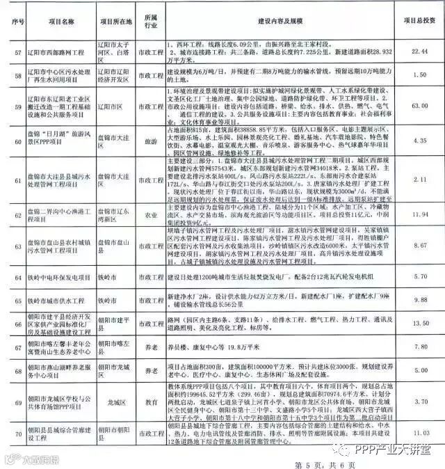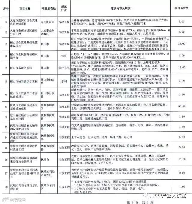 2017年辽宁省第二批PPP重点推介项目表