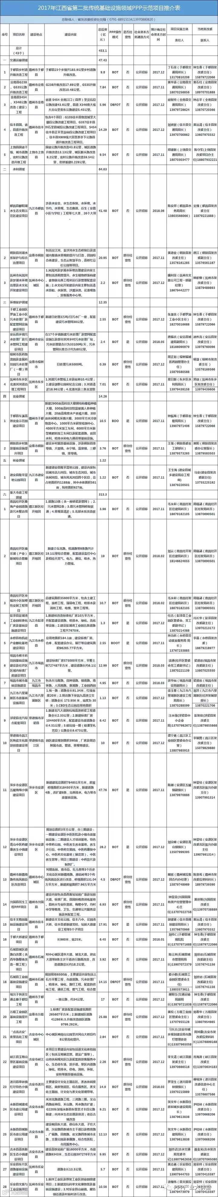 江西发改委推介2017年43个PPP项目,总投资453.14亿元。