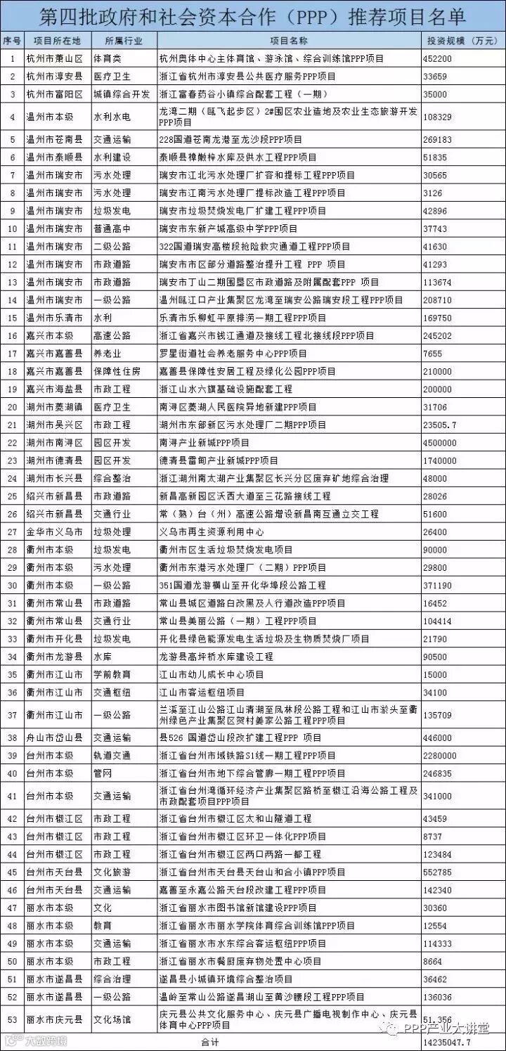 浙江省财政厅推荐53个PPP项目,总投资金额1424亿元。