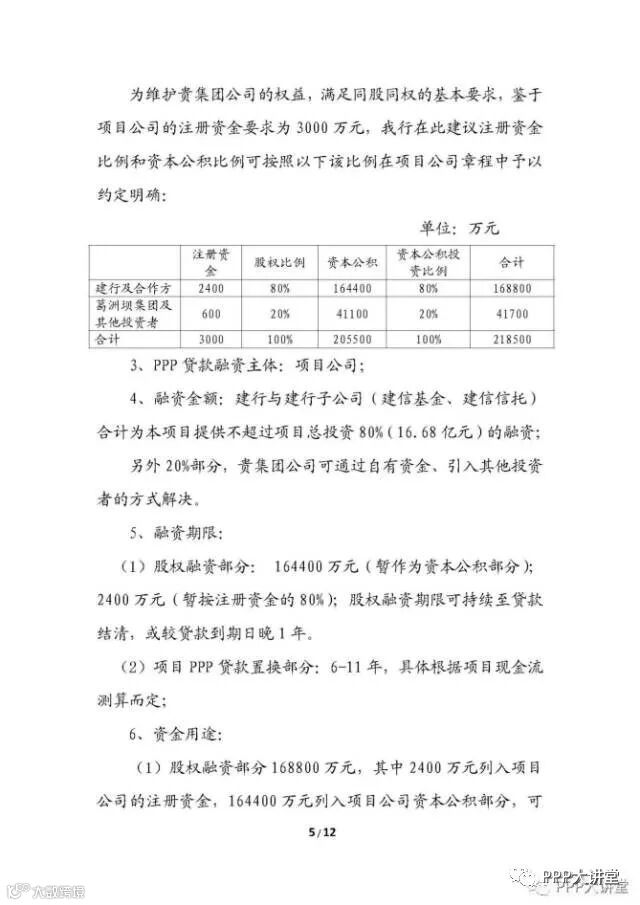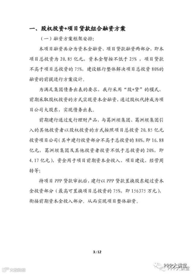 方案一:PPP项目投融资方案