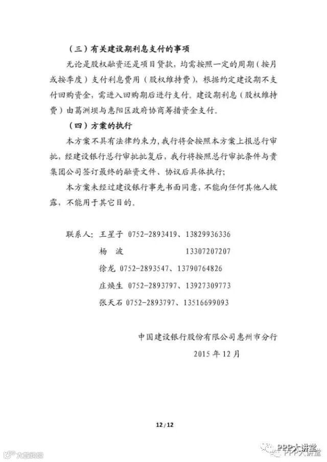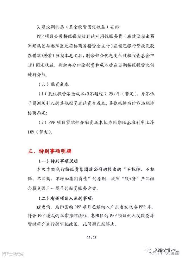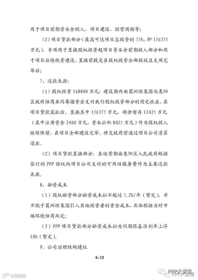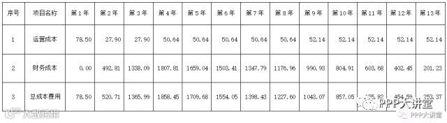 g、项目回购方式为:通过股权溢价和资产溢价进行回购,回购款为建设成本+资金利息。第4年回购20%,以后年度等额回购,第5年至第13年每年回购8.89%。