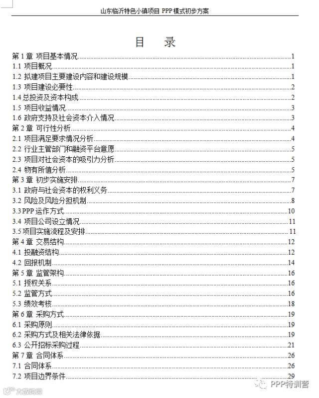 山东临沂特色小镇项目 PPP 模式初步方案