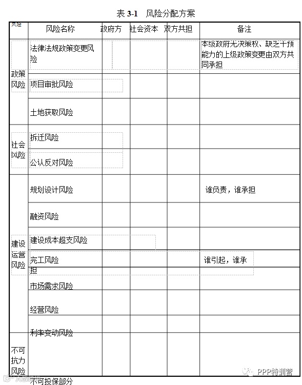 表 3-1 风险分配方案