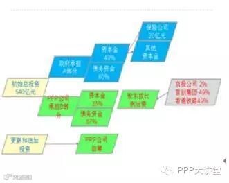初始总投资540亿,A部分是政府承担,是按照资本金40%债务资金60%来分担的,资本金部分有保险公司的120亿加上其他资本金。
