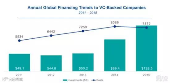 2015年,可以说是全球风险资本风生水起的一年,总金额超过1285亿美元,超出2014年总额($894亿)的44%,交易数量达7278起。风投领域覆盖了医疗、鳍式晶体管、教育等。
