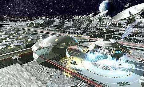 165年后大规模开发月球,将在月球上深达40公里的巨型火山洞中建筑新城市,用水将取自于贮存于月球南北两极的冰。火山洞内与外界将全封闭,内部充满与地球上一样的大气,人类在洞内可以不穿太空服自由活动。并且,用月球上储量丰富的氦-3来进行核聚变发电,再通过巨型红外线发射器用以大量供应地球。