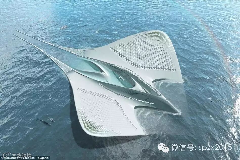 北京时间8月19日消息,据国外媒体报道,这座具有未来风格的漂浮城市有朝一日可能成为那些喜欢将大海景色尽收眼底的人的理想家园。这艘大船由法国建筑师雅克-罗格里设计,形如一个巨型蝠鲼(又叫魔鬼鱼),可用作巡游船或遥远未来漂浮城市的灵感。