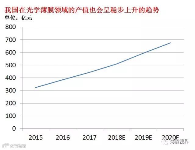 国内光学膜企业亦受益于国内液晶显示行业而快速崛起。自从2009年以来,我国就进入了大尺寸LCD面板的投资高峰,参与投资的企业有京东方、华星光电、LGD等。随着我国面板和终端产品的快速发展和扩张,如下图显示,今后我国在光学薄膜领域的产值也会呈稳步上升的趋势。
