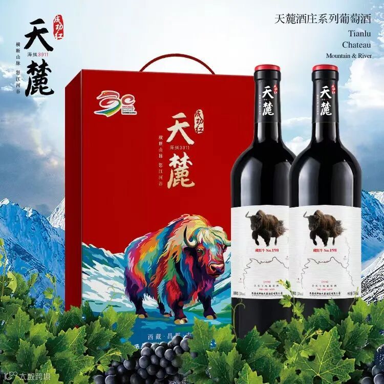 T008天麓美乐干红葡萄酒198(藏牦牛)-双支礼盒装