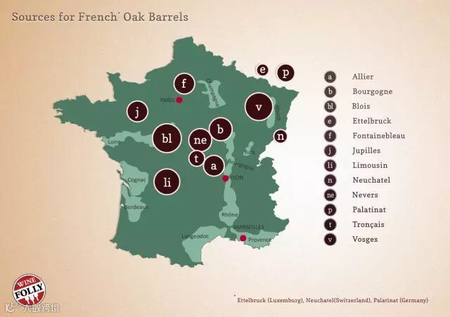 法国主要的橡木产地包括以下4个地区: