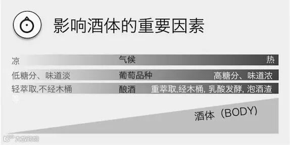 葡萄酒中的剩余糖分会增加酒体,因此糖分越高,酒体越重。
