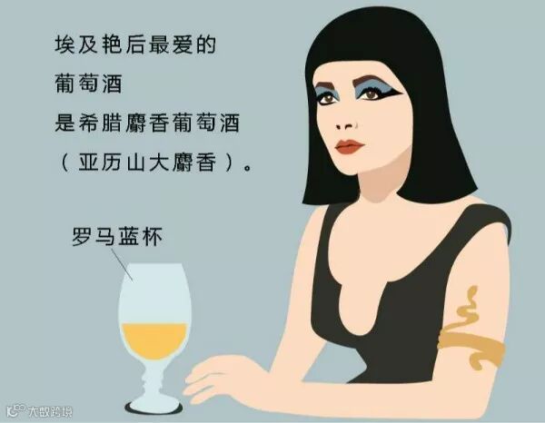 1. 埃及艳后最钟爱的葡萄酒是亚历山大麝香葡萄酒(Muscat of Alexandria),这是一款来自希腊的丰盈、甜美型葡萄酒。