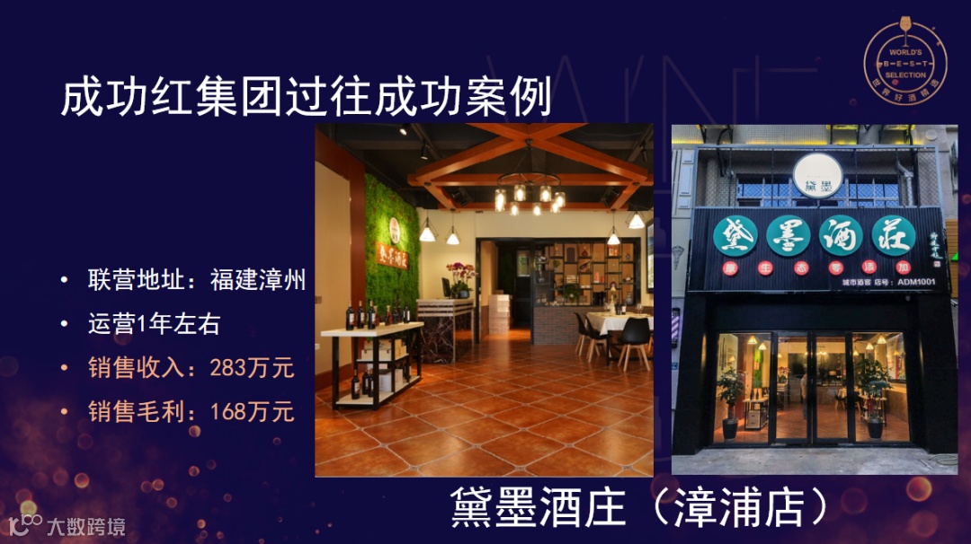 店皆取得了非常不错的销售业绩,成功红集团团队以丰富的酒类运营经验帮扶项目落地,并提供:专业知识和营销策略培训指导;公众号、微博、新闻源等新媒体协助宣传推广;运营技术指导,三大运营支持,助联营商轻松获利。