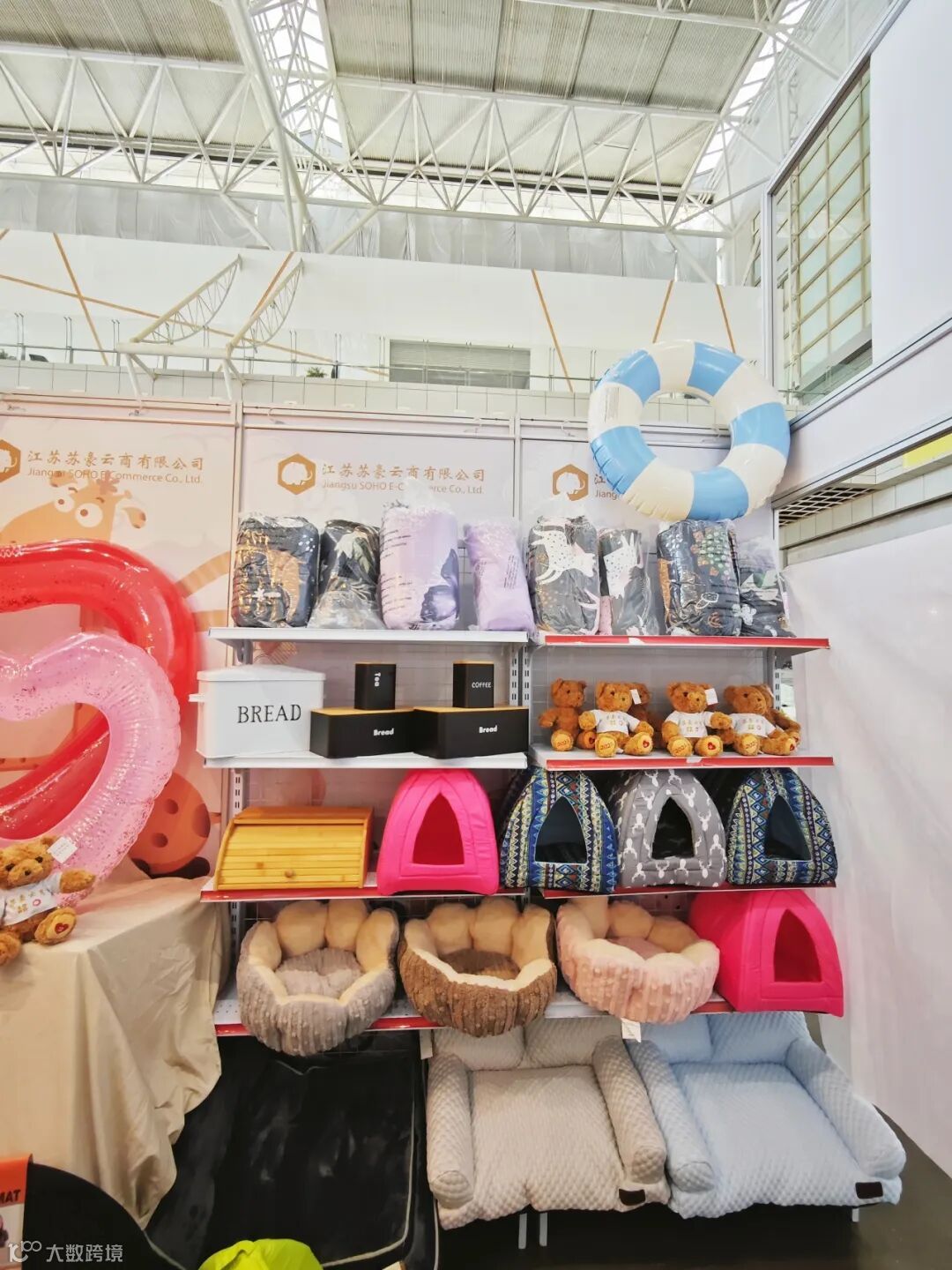 苏豪云商以两个千万美元级自有品牌——HollyHome和DOEworks为基础,筛选出亚马逊平台排名前列的热销产品作为本次活动的重点展销产品。其中,宠物用品以优秀的外观和实用的功能得到消费者的高度认可,现场一位宠物主表示“简直是为毛孩子量身打造的宠物窝”。此外,水上充气用品也吸引了一批“粉丝”驻足,成功收获一批高质量意向订单。