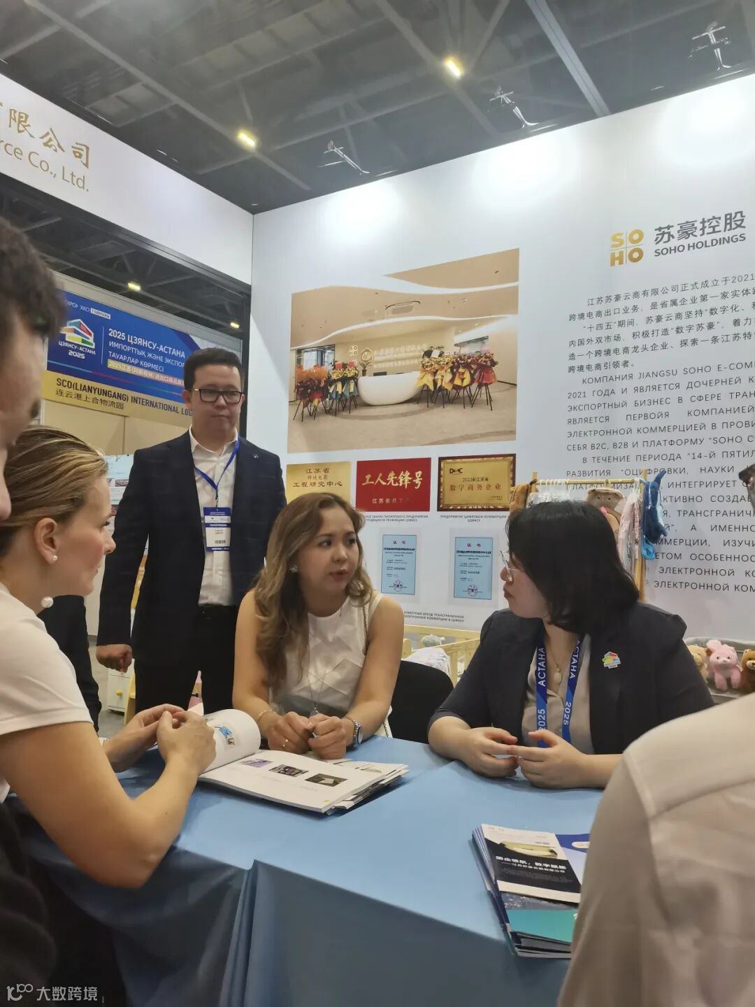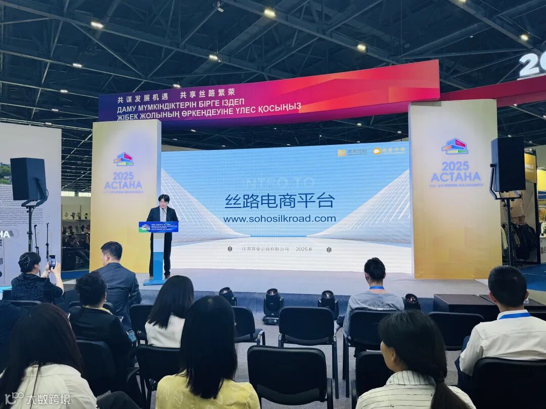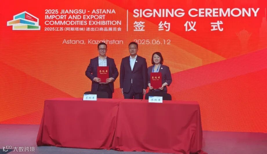 北京时间6月12日,2025江苏(阿斯塔纳)进出口商品展览会现场,苏豪云商与哈萨克斯坦“Teez Logistics”平台签订战略合作协议。 苏豪控股集团党委委员、副总裁丁海出席签约仪式。