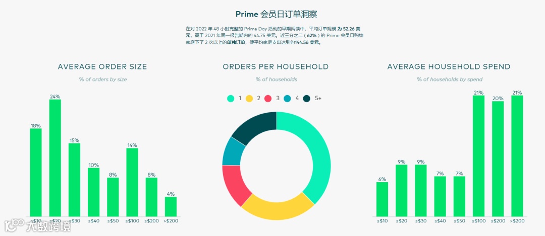 从数据中可以看到,相比去年,亚马逊平均订单价格较2021年的$30.83上升到$33.58,平均订单规模也由去年的$44.75上升到$52.26,涨幅超过14%。