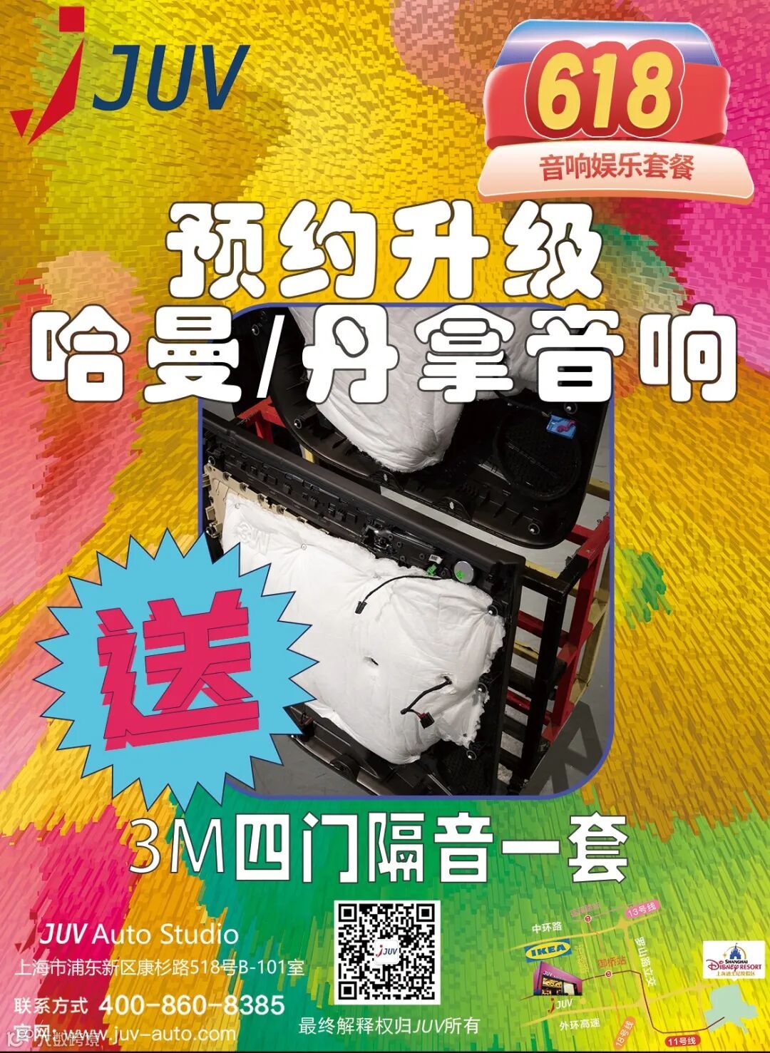 预约升级哈曼/丹拿音响,赠送3M四门隔音一套!