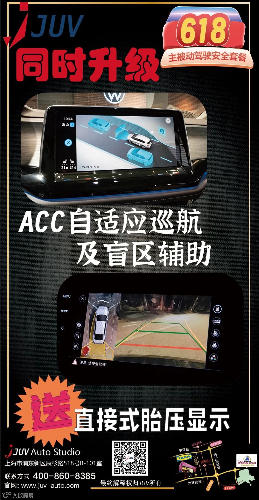 同时升级ACC以及盲区辅助,送直接式胎压显示一套!