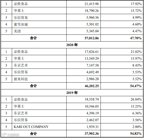 报告期内,发行人向前五名客户的销售额及占当期销售总额的百分比情况如下: