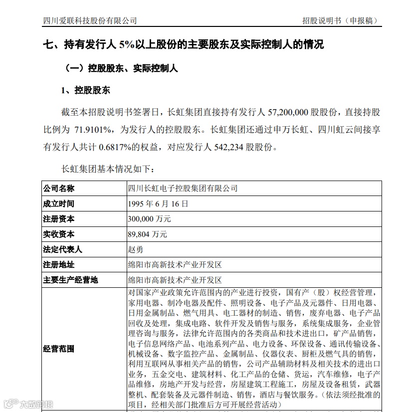 因长虹集团及绵阳市国资委无法控制四川虹云、绵阳富达、申万长虹,故绵阳市国资委能够控制的发行人股份数量、比例为长虹集团直接持有的发行人股份数量、比例,即,绵阳市国资委能够实际控制的发行人股份数量为 57,200,000 股,比例为 71.9101%。