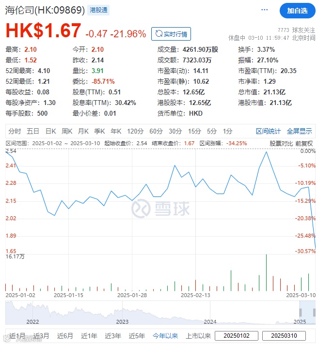 3月10日,深交所公告,港股通标的证券名单发生调整并自2025年03月10日起生效,28只港股被剔除港股通名单,其中包括中国最大的连锁酒馆海伦司(09869.HK,HLS.SG)。
