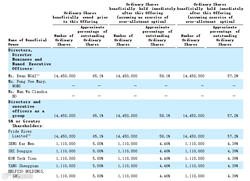 Mr. Kwan NGAI,通过Pride River Limited持股65.1%;