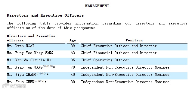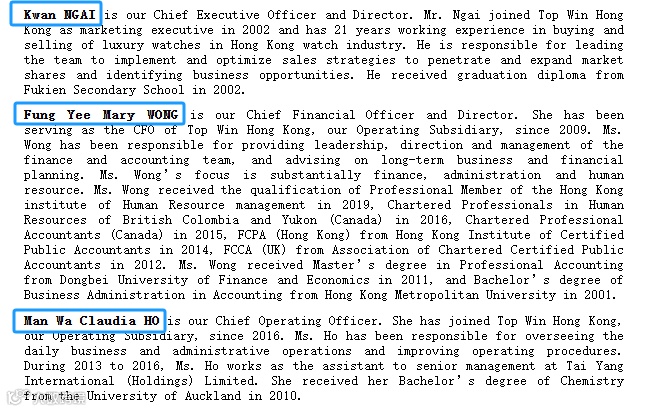 招股书显示,Top Win的管理层如下: