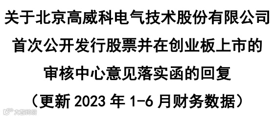 深圳证券交易所上市审核委员会2023年第76次审议会议于2023年9月27日召开,北京高威科电气技术股份有限公司(首发)获通过。