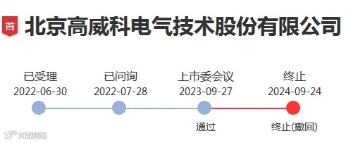 发行人曾于2011年向中国证监会提交首发上市申请,2012年1月证监会做出不予核准申请的决定。发行人于2015年再次提交申请,后于2018年1月撤回申请。2024年9月24日,因北京高威科电气技术股份有限公司、保荐人撤回发行上市申请,本所决定终止其创业板发行上市审核。