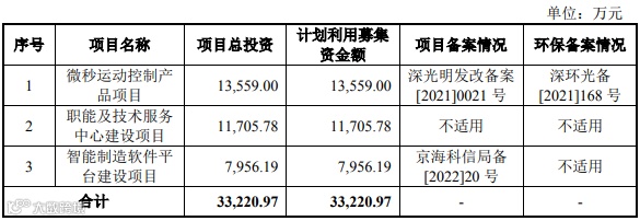 本次发行不超过3,446.6667万股,且不低于发行后公司总股本的25%,预计融资3.3221亿元,计划投资于以下项目: