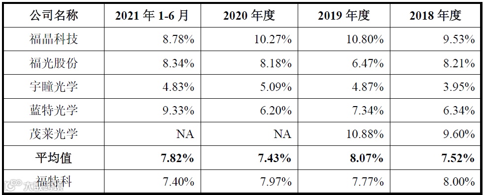 报告期内,福特科研发费用率与同行业可比公司的比较情况如下: