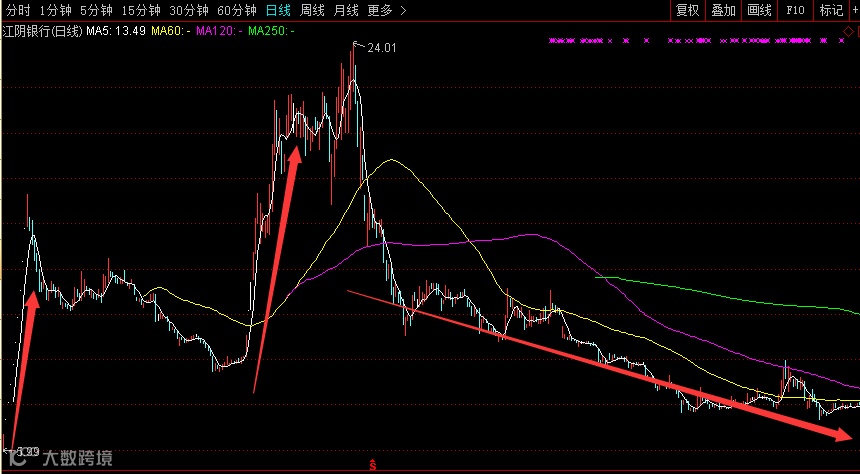 江阴银行于2016年9月2日上市,上市后连续10个一字涨停。随后在2017年2月迎来新一波上涨,股价短期内翻倍。不过,激情过后则是股价的绵绵阴跌,目前股价较最高价跌幅近七成。
