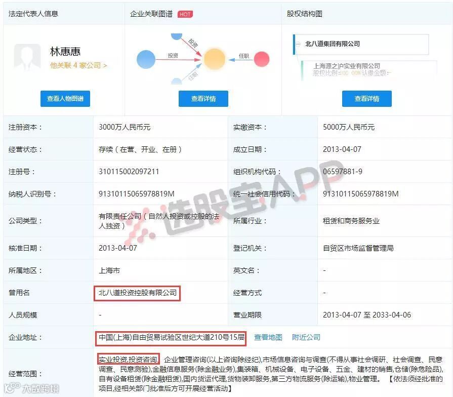 2013年4月,北八道投资控股有限公司在上海成立,信泰融资划归旗下。