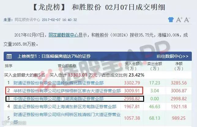2月7日龙虎榜显示,买二拉萨柳梧新区察古大道买入3000万元。(厦门湖滨南路当时市场并不知道其实厦门集团席位)