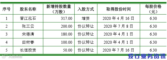 发行人最近一年新增股东 5 名,新增股东持股变化情况如下: