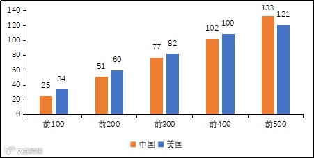 ▲数据来源:赛迪智库根据《财富》中、美500强排行榜数据整理