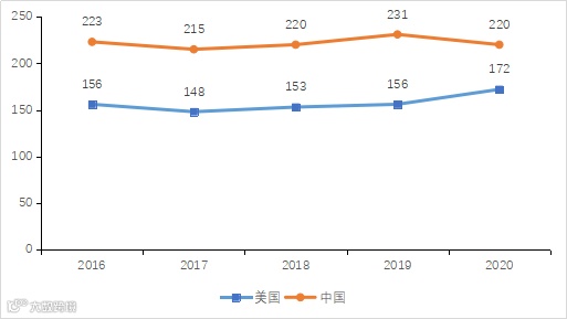 一是我国上榜企业营业收入低于美国。2020年世界500强我国上榜企业平均营业收入为656.78亿美元,美国为810.44亿美元。