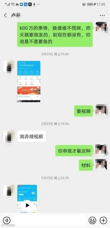 “2020年2月23日,我向卢某讨钱,卢某发给我一张手机银行的截图,截图中显示她在银行中还有1900多万的资金,后来她一次次以各种理由拖延,为了让我相信,她还发给我登录手机银行查询余额过程的手机录屏。”被害人之一,徐某对民警说。