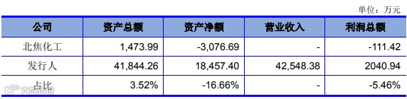 2018 年度收购北焦化工 100%股权,前一会计年度末或年度(2017 年 12月 31 日/2017 年度)北焦化工及发行人指标数据如下: