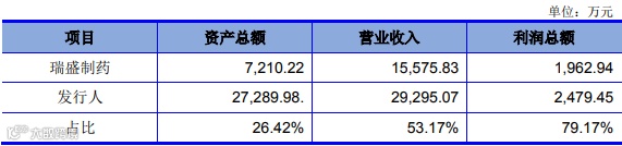 收购瑞盛制药66.67%股份前一会计年度末或年度(2015年12月31日/2015年度)瑞盛制药及发行人指标数据如下: