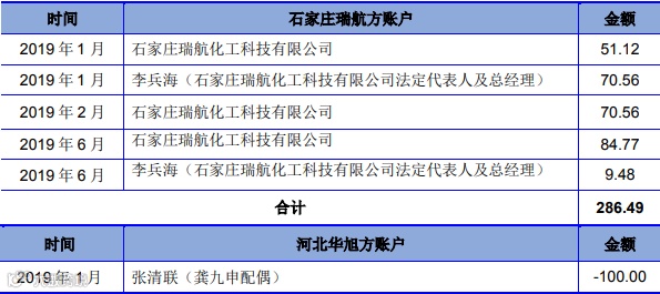 (3)报告期内实际控制人俞小欧个人账户存在与客户石家庄瑞航化工科技有限公司(以下简称“瑞航化工”)、委托加工方河北华旭化工有限公司(以下简称“河北华旭”)主要负责人、舟山华雄能源有限公司的资金往来,经保荐机构核查俞小欧资金流水,并与对方单位负责人访谈,了解资金往来的原因。