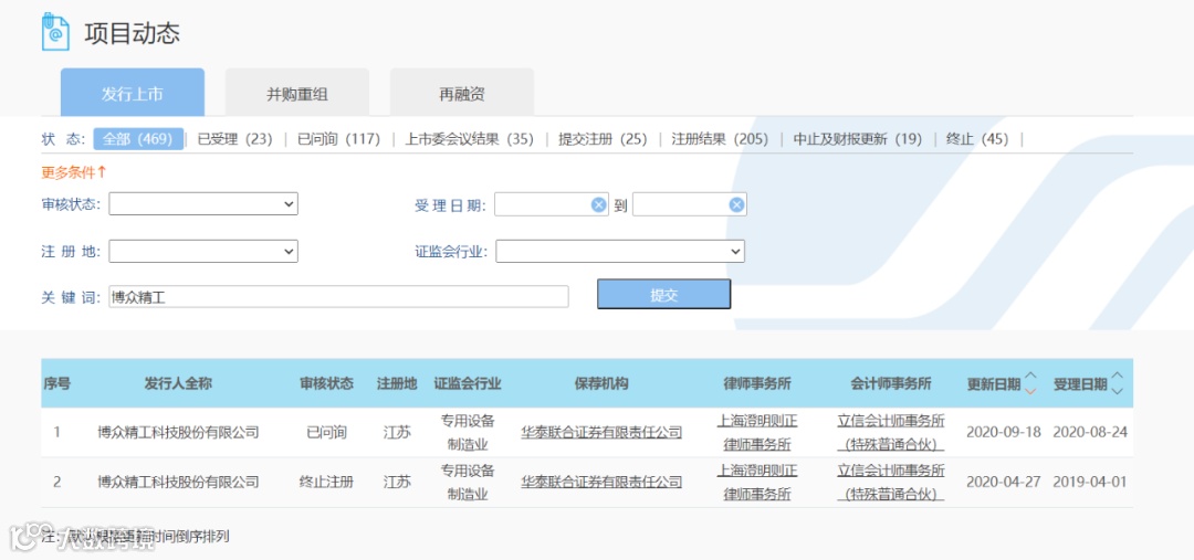 第二次受理日期2020年8月24日,审核最新状态2020年9月18日显示已问询